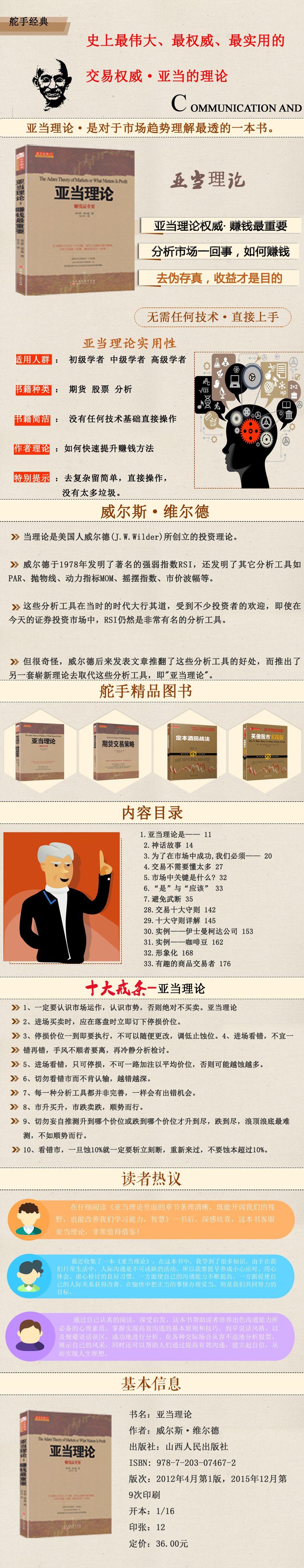 亚当理论是一个完整又简单的交易方法,在网络上,任何提及亚当理论的网页都没有将这种方法公布出来,考虑到现在已经进入信息化时代,那么这是非常有趣的现象。可能所有读者都明白,这个方法“说不得”。说出来就难免会破坏这种方法的启发性,那样就会让这个理论失去“点醒”的意味,这也是这本书*珍贵的地方。