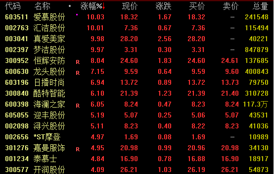 纺织服装板块盘中大幅走高,截至收盘,爱慕股份涨停斩获5连板,汇洁股份、真爱美家、梦洁股份等亦涨停,龙头股份、日播时尚涨约7%。