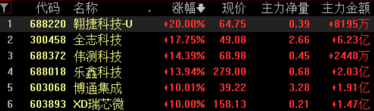半导体板块表现活跃,翱捷科技、全志科技、乐鑫科技等涨幅居前。