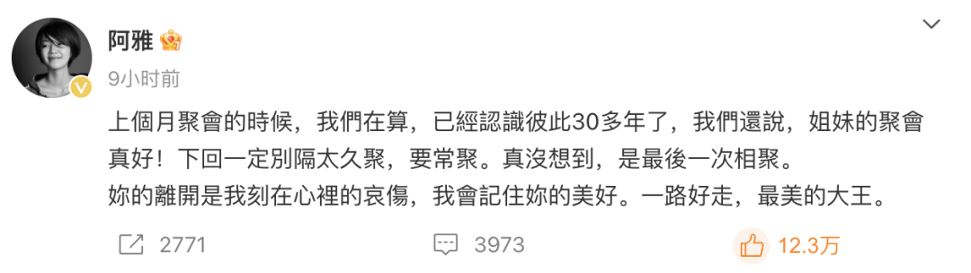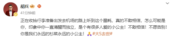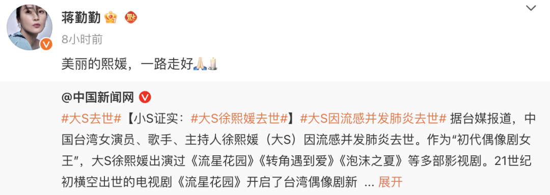 大S因患流感并发肺炎离世,众多明星发文悼念