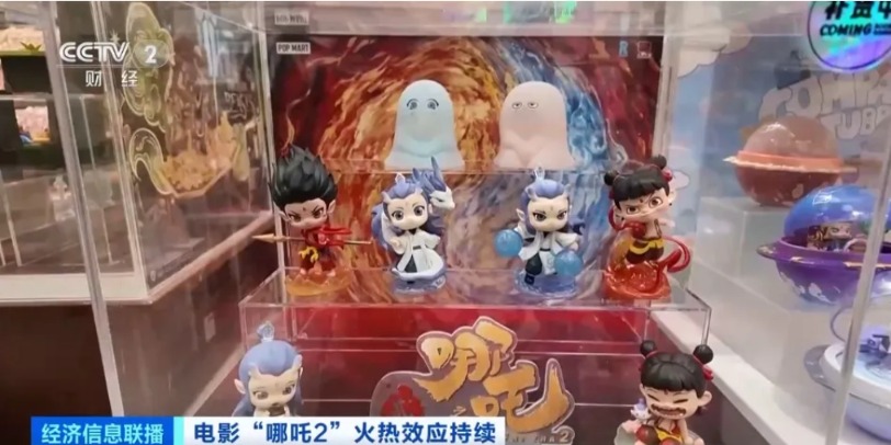 另据央视财经报道,随着《哪吒2》电影热映,相关的电影周边产品也火了起来,不少产品已经断货,可谓一"吒"难求。记者在江苏南京新街口的一家潮玩门店看到,不少消费者前来咨询动画电影《哪吒之魔童闹海》的周边盲盒,但都失望而归。