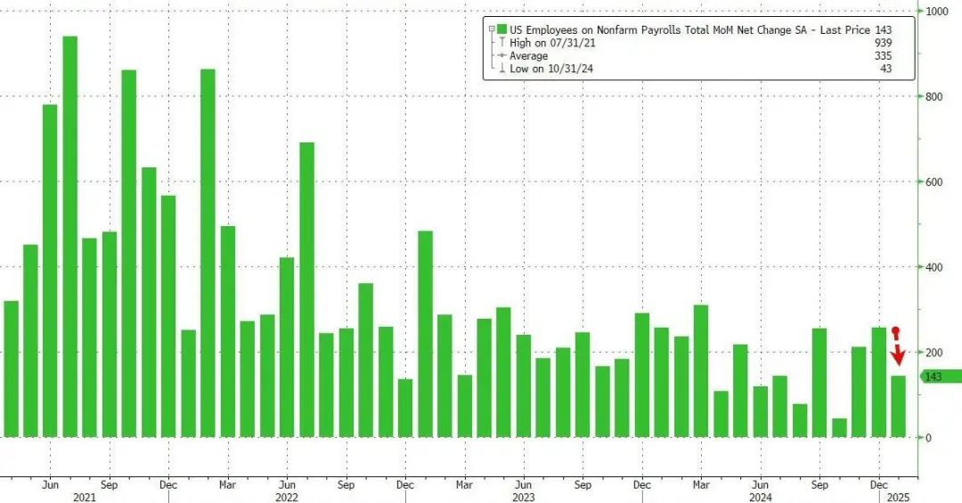 消息面上,美国劳工统计局当地时间周五公布数据显示,美国1月非农就业人口增长14.3万人,为三个月最低水平,远不及预期的17.5万人。与此同时,12月新增就业人数从25.6万大幅上修,至30.7万。11月数据也上修。11月和12月合计上修10万人。
