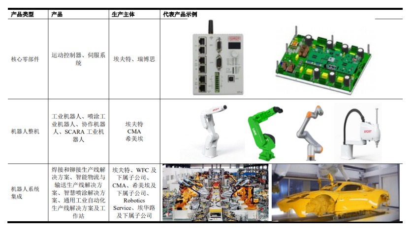 埃夫特主要从事工业机器人核心零部件、整机、系统集成的研发、生产、销售业务。
