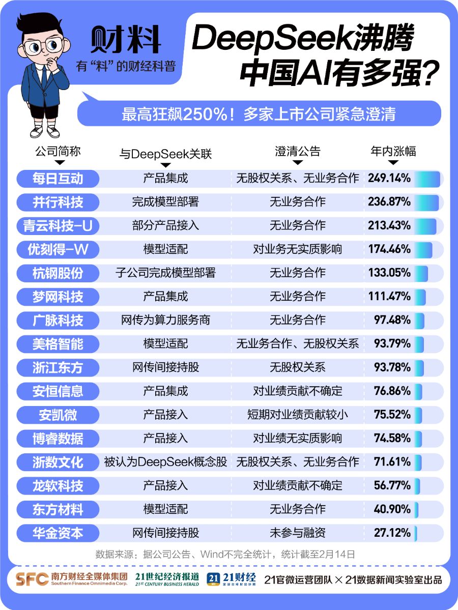 这波DeepSeek热潮,哪些公司赚得盆满钵满?它们“含DeepSeek量”到底有几成?本期《21财料》,为你揭秘其中的资本真相!