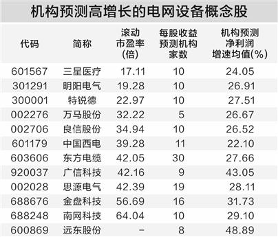 在未来增长潜力方面,根据Wind机构一致预测数据,有5家及以上机构评级的个股中,2026年、2027年净利润增速均有望超20%的电网设备概念股有12只。