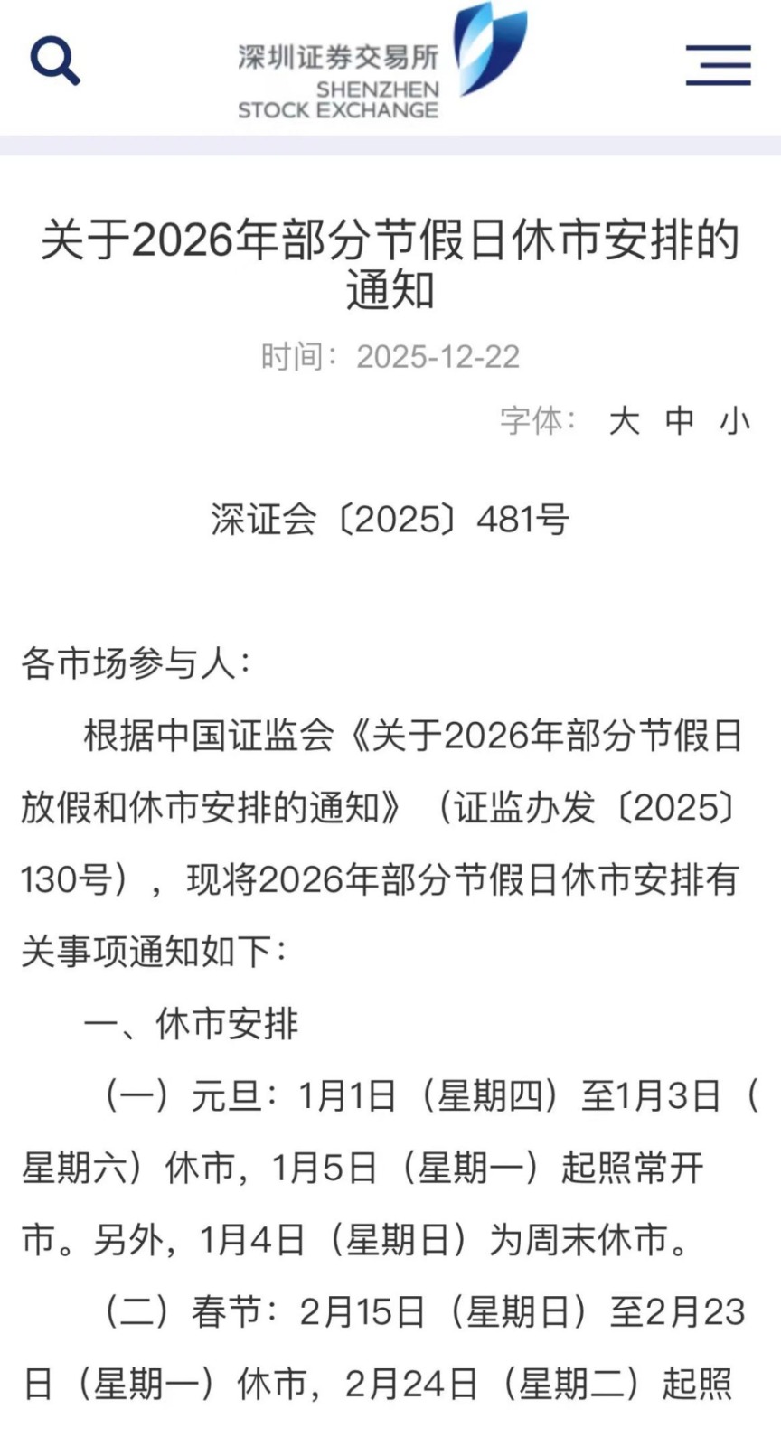 12月22日晚,沪深北交易所发布2026年部分节假日休市安排。沪深港通下港股通交易日安排也同步出炉。