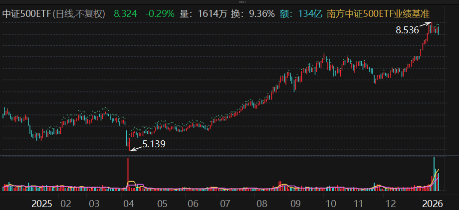 具体来看,南方中证500ETF成交额为134亿元,高于1月19日的127亿元成交额。华泰柏瑞沪深300ETF成交额为136亿元,1月19日成交额为138亿元。此外,华夏中证A500ETF、华泰柏瑞中证A500ETF成交额均超过140亿元。