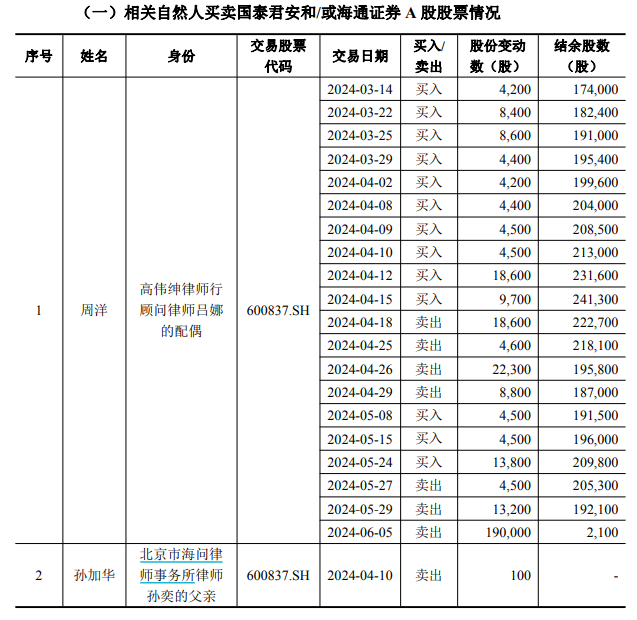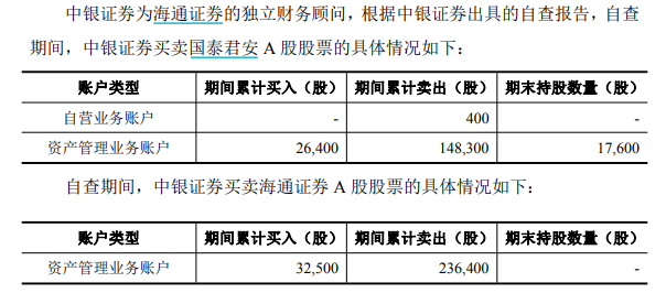 国泰君安与海通证券内幕信息知情人交易核查结果出炉
