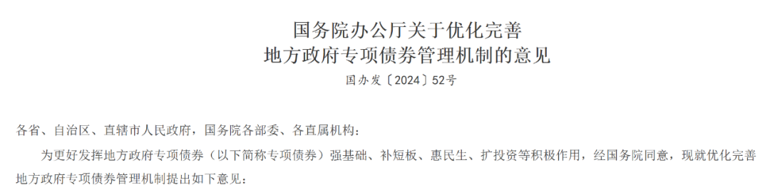 中国政府网12月25日消息,近日,国务院办公厅印发《关于优化完善地方政府专项债券管理机制的意见》,旨在更好发挥专项债券强基础、补短板、惠民生、扩投资等积极作用。
