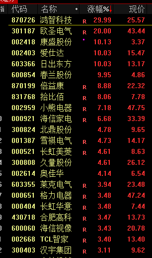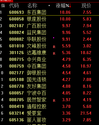 零售、家电等消费股走强,东百集团、银座股份、广百股份、益民集团、日出东方等涨停。
