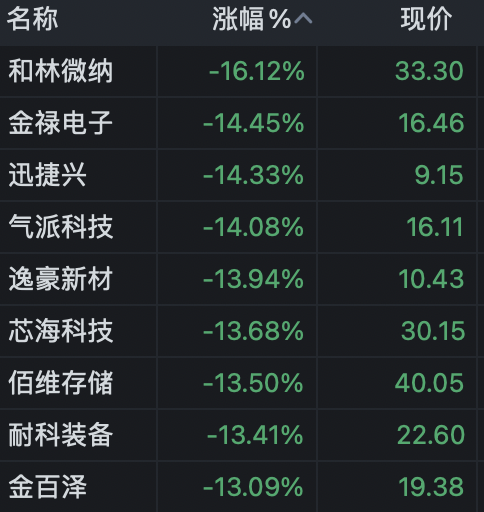 蓝英装备、佰维存储等跌超10%。