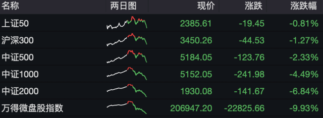 小微盘股大跌,中证2000指数跌6.84%,万得微股盘指数跌9.93%。