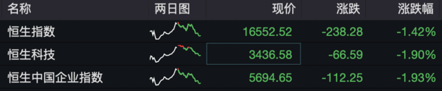 港股方面,恒指跌1.42%,恒生科技指数跌1.90%,此前一度涨超1%。半导体、汽车板块跌幅居前,华虹半导体跌超7%,小鹏汽车、蔚来跌超4%。
